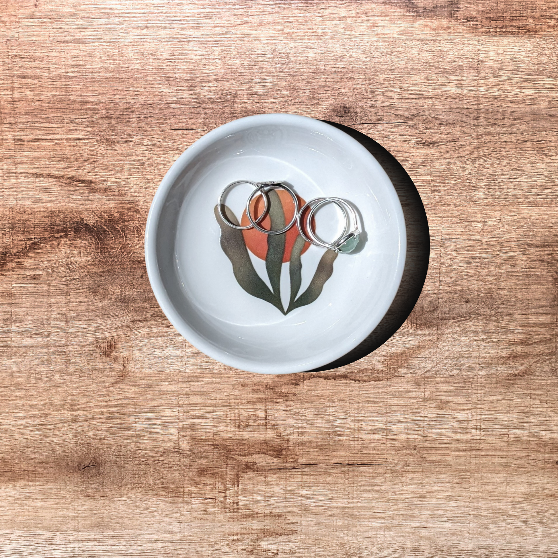 Ceramic Trinket Dish – Botanical Sun Print Jewelry Holder, Boho Catchall